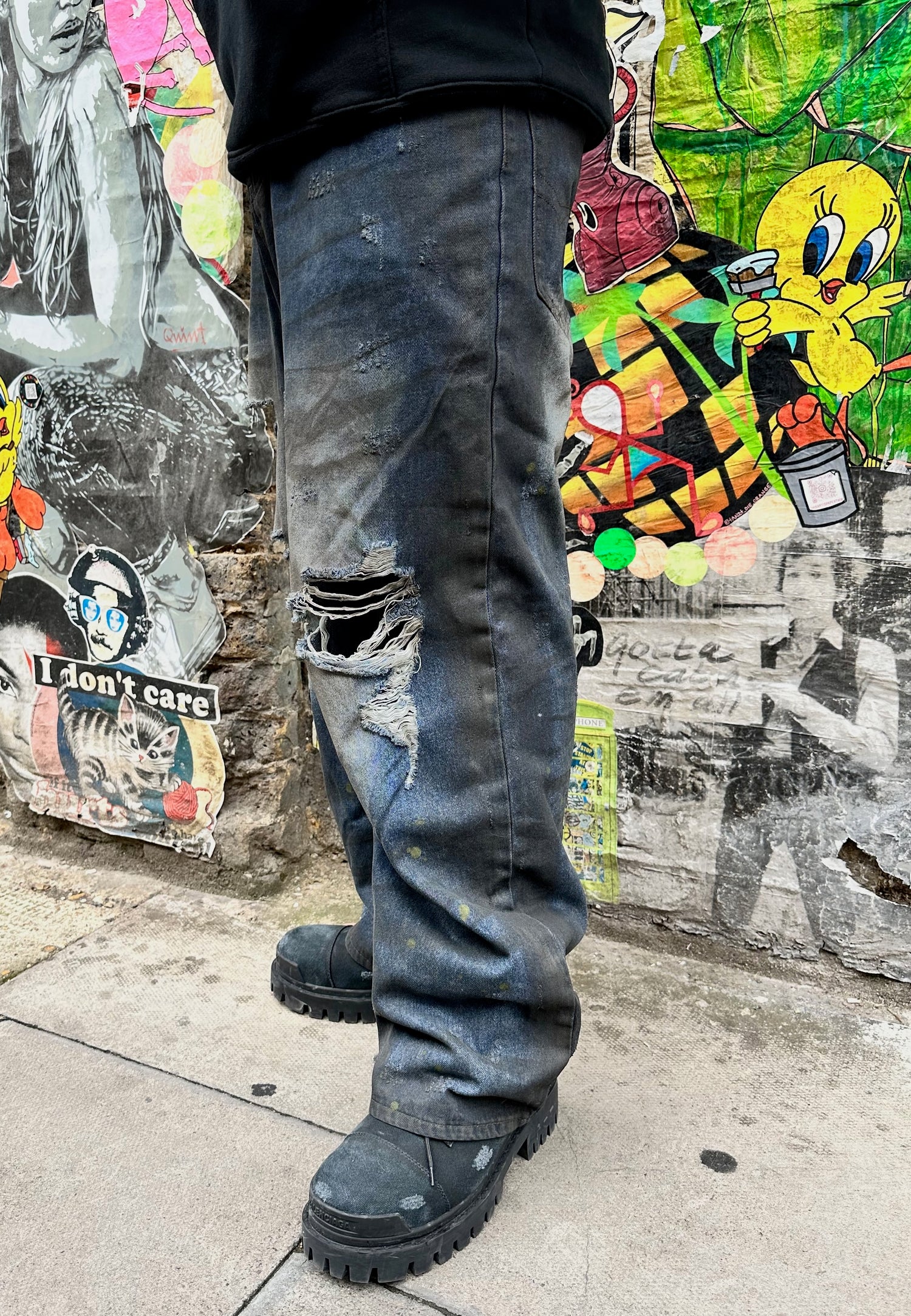 RAVE #12 slightly baggy dirty effect destroyed jeans