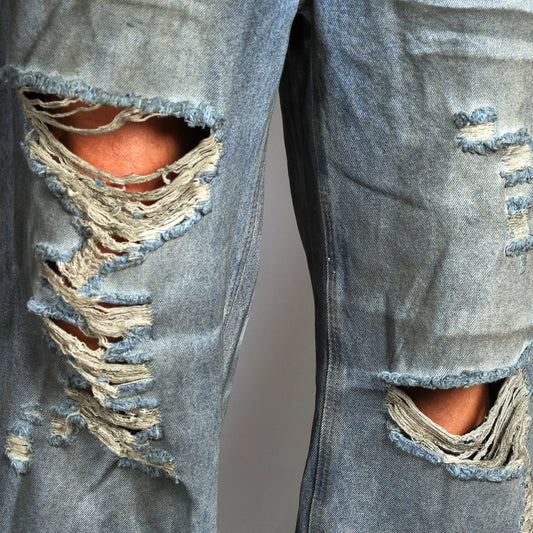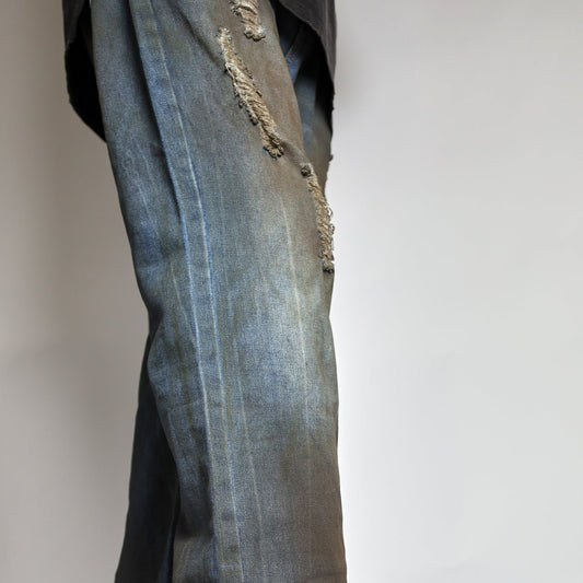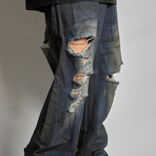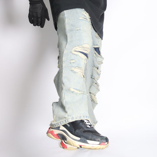 RAVE #04 baggy ripped destroyed double layered jeans