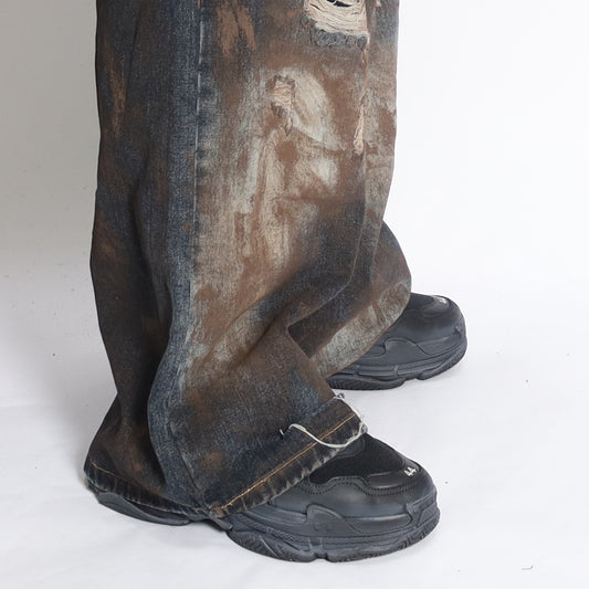 RAVE #10 super baggy dirty effect ripped washed jeans