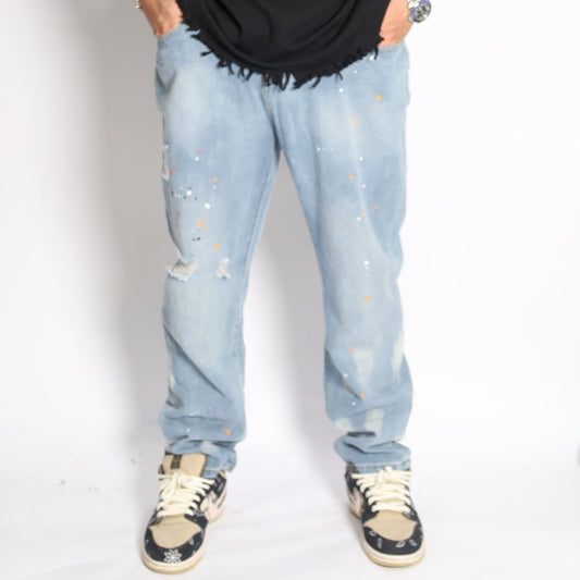 Regular price £45.00 GBPRegular priceUnit price / perSale price £45.00 GBPRELAX #01 straight slightly ripped paint effect jeans